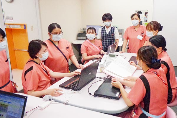 急性期の病棟では、刻々と変化する病状に対して観察とケアを丁寧に展開することで、一日も早い回復を目指して日々努力しています。また、患者さま・ご家族の不安や心配を少しでも軽減するために、出来るだけお話する時間を作り、寄り添う看護にも心がけています。患者さまやご家族との出会いを大切にした日々の看護実践が私たちの「やりがい」です。